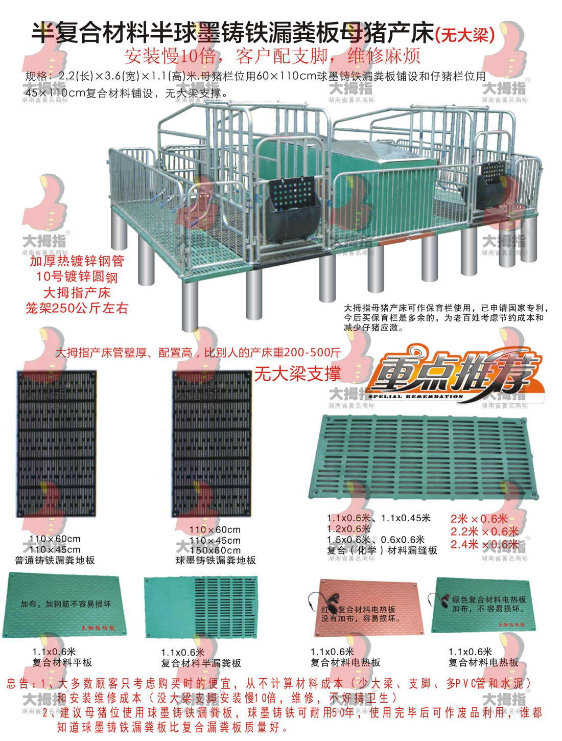 半復合材半球墨鑄鐵漏糞板母豬產床(無大梁)